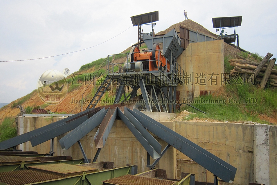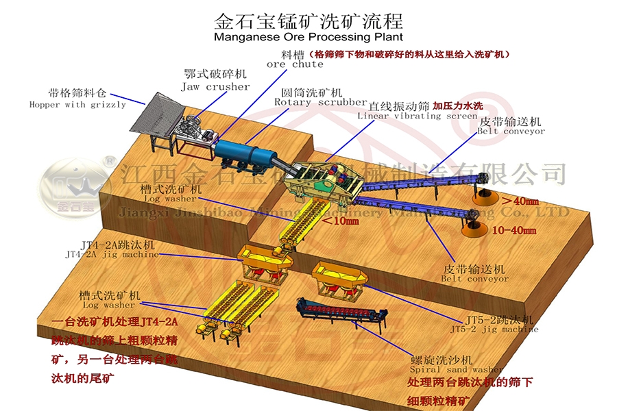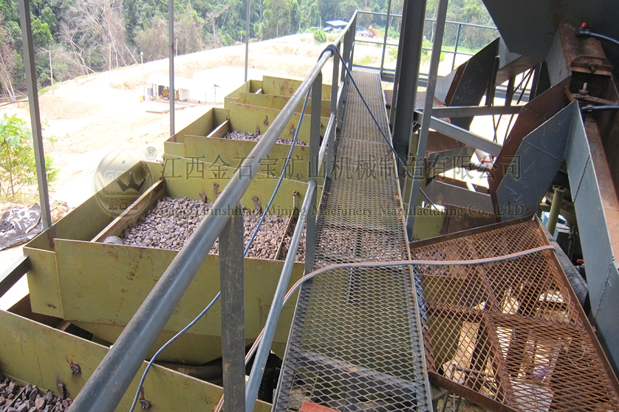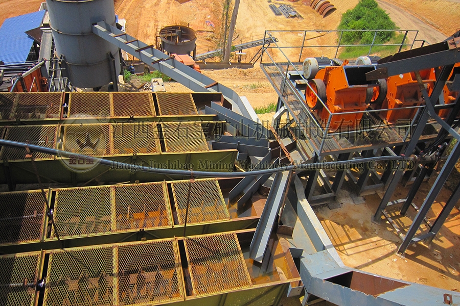 猛矿重选案例:设备有鄂破-圆筒洗矿机-直线振动筛-槽式洗矿机-跳汰机-螺旋洗沙