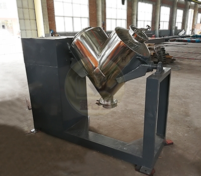 当混料筒转动时,物料在筒内从分解到组合。由于V型筒体内壁是非常复杂的曲面,使得物流的旋转轨迹无规律。加上物料在筒内运转时产生的纵向流动。这种纵横交叉复杂的流动,使物料获得了充分的混合效果。